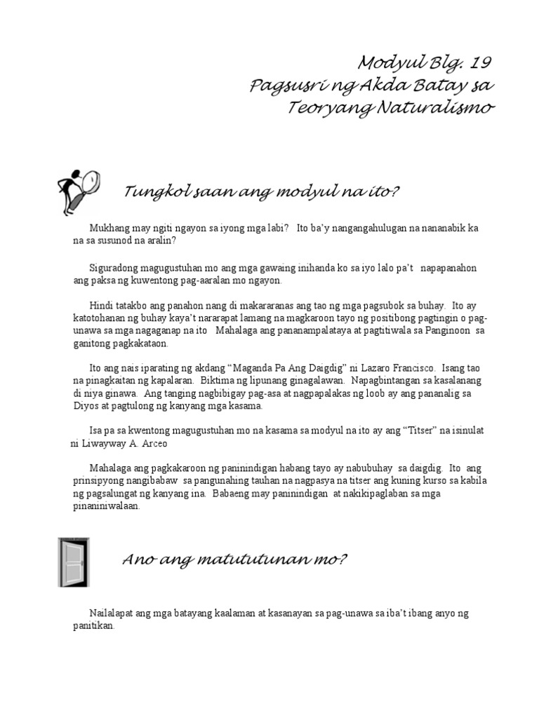 Modyul 19 Pagsusuri Ng Akda Batay Sa Teoryang Naturalismo Pdf