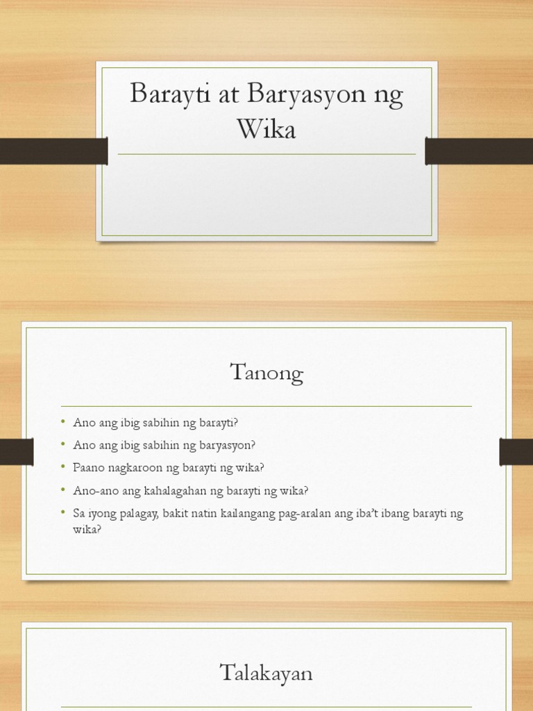 Kahulugan Ng Barayti Ng Wika By Nino Rico Reyes
