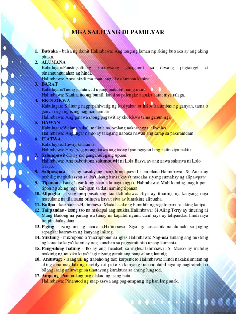 Ano Ang Kahulugan Ng Di Pamilyar Na Salita