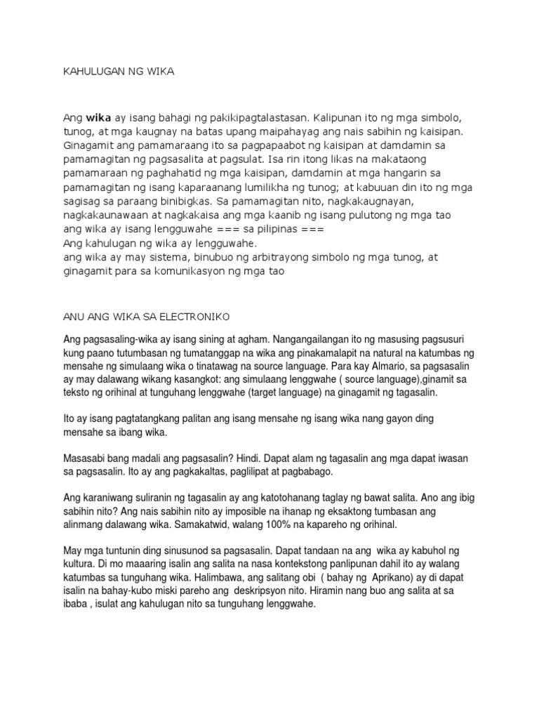 Oct 15 2020 Marami pang Pilipinong dalubwika at manunulat ang nagbigay ng kanilang pakahulugan sa wika. Halos magtatatlong taon na kaming magkakasama ng aking ermat simula ng iniwanan niya kam.