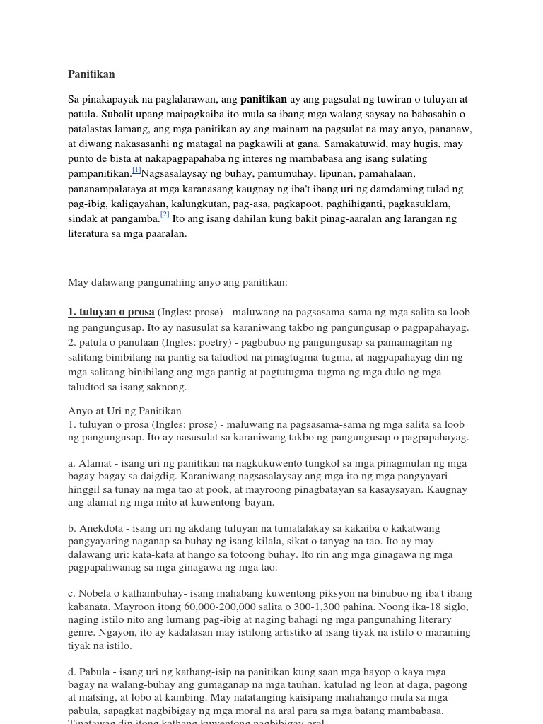 Ito ay uri ng panitikan na naglalaman ng mga pangungusap at mga talata. Ang pagsusuring pampanitikan ay isang pag-aaral pagtalakay pagsusuri at pagpapaliwanag ng panitikan. Ang panitikan ay tinutukoy sa lahat ng uri ng pahayag nakasulat man o binibigkas.