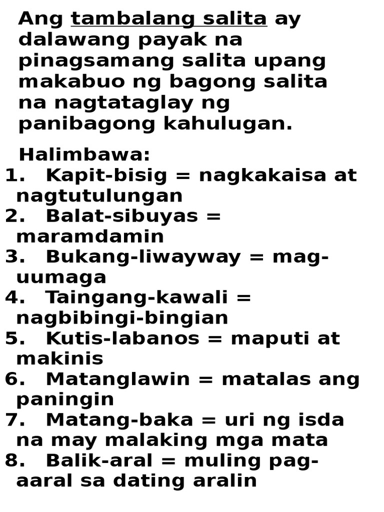 Tambalang Salita Halimbawa With Pictures Tambalang Salita Agaw