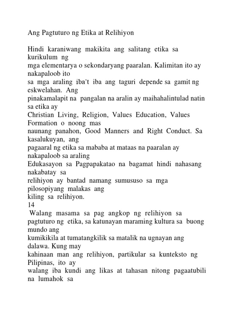Ang Pagtuturo Ng Etika At Relihiyon Docx