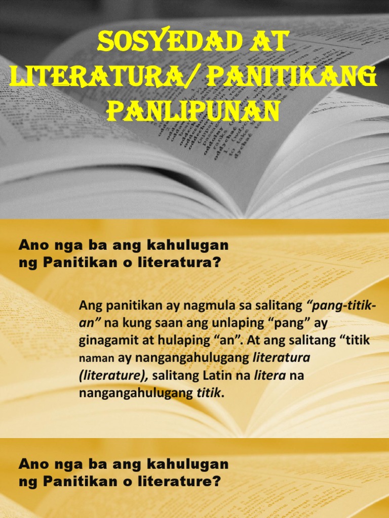 Ano ang kahulugan ng panitikan o literatura. Ay ginamit at hulaping an. May anyo pananaw at diwang nakasasanhi ng. At sa salitang titik.